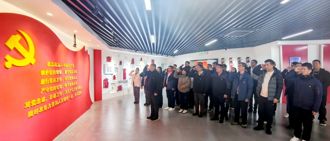 參觀尾聲,黨總支書記蔡巖帶領全體黨員干部在基地宣誓廳整齊列隊,面向黨旗重溫入黨誓詞。“我志愿加入中國共產黨……”鏗鏘有力的誓言響徹大廳,既是對初心的叩問,更是對責任的承諾。